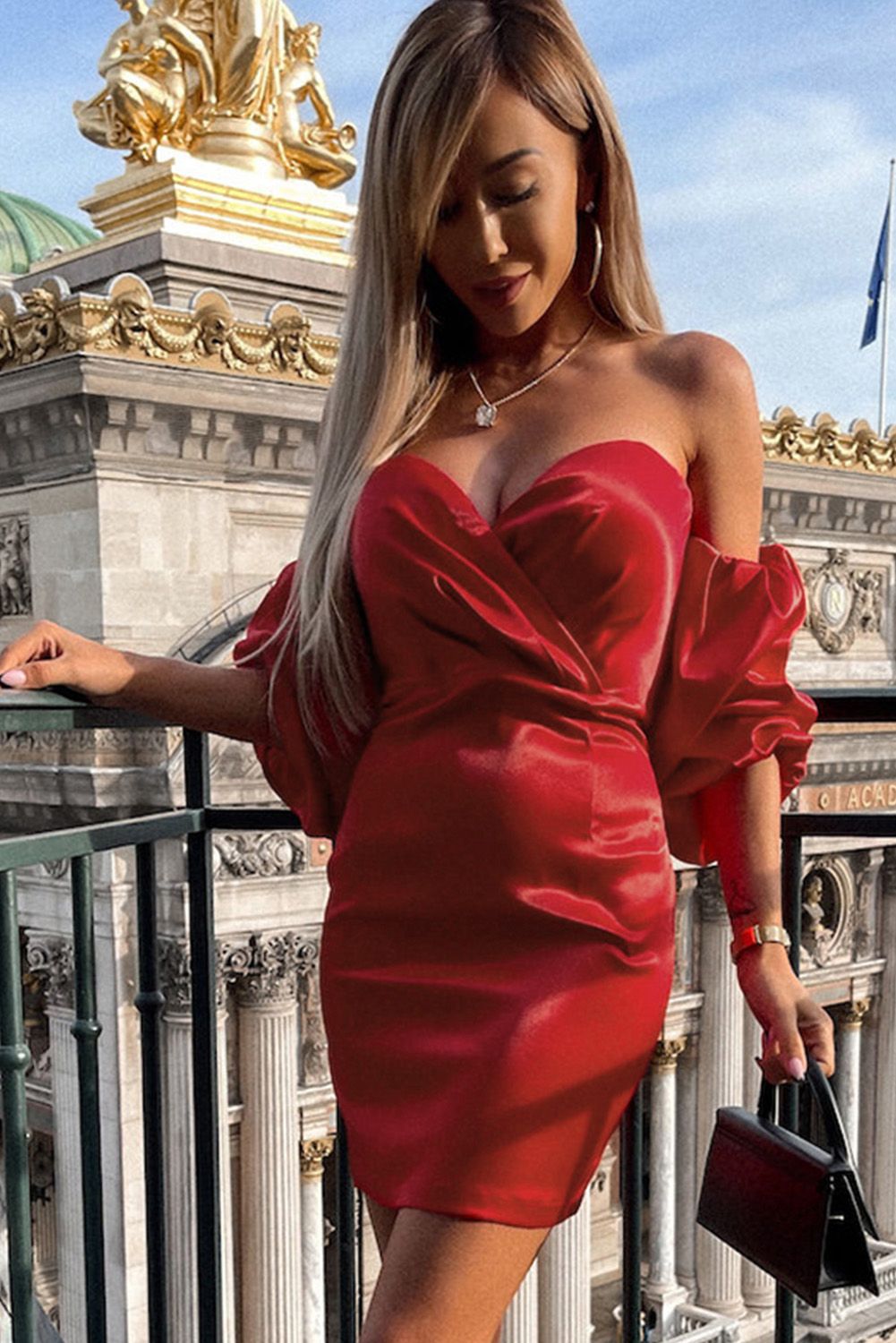 This tube mini dress is designed with a glossy sexy look for the next martini party