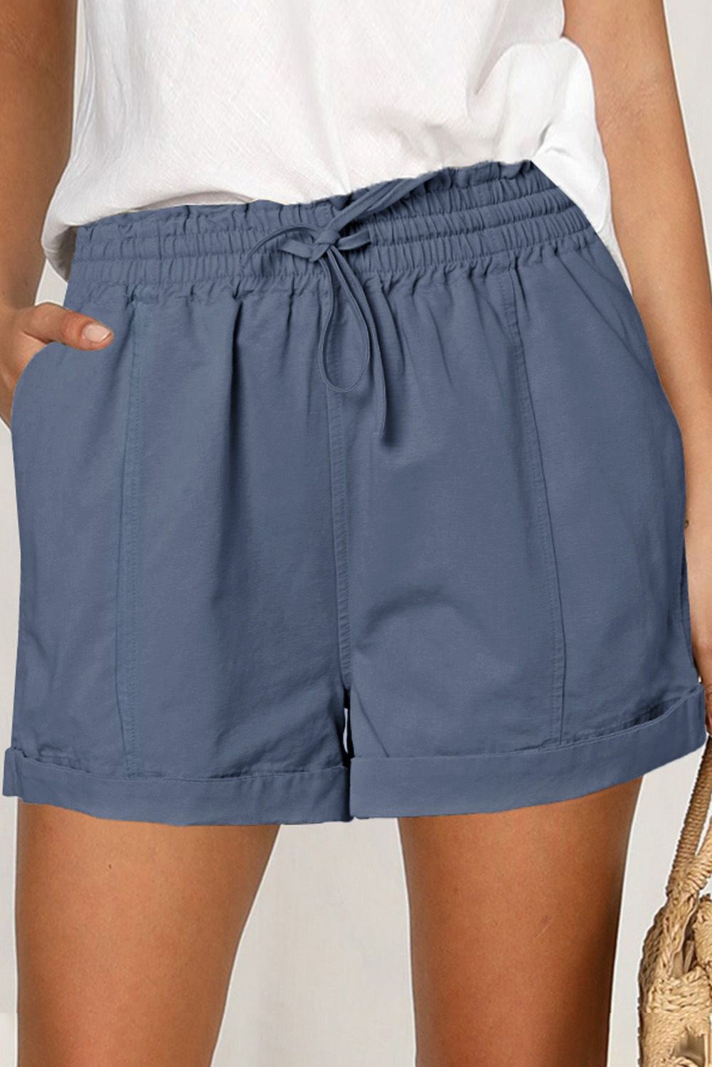 With the elastic waist and self-tie drawstring, the shorts can better hug your waist