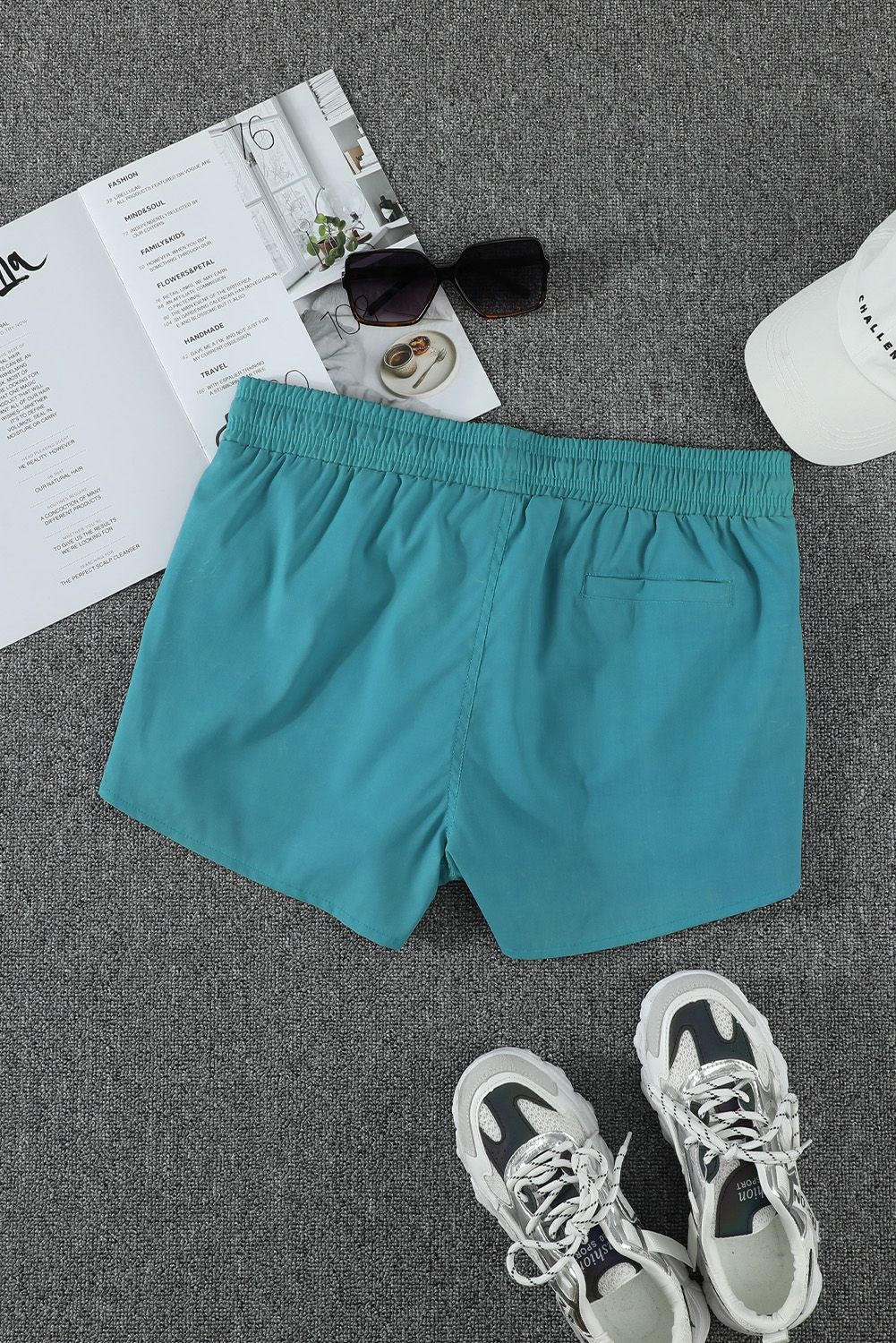 Casual shorts for women have an elastic waist with a drawstring