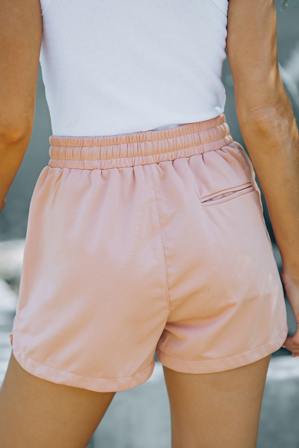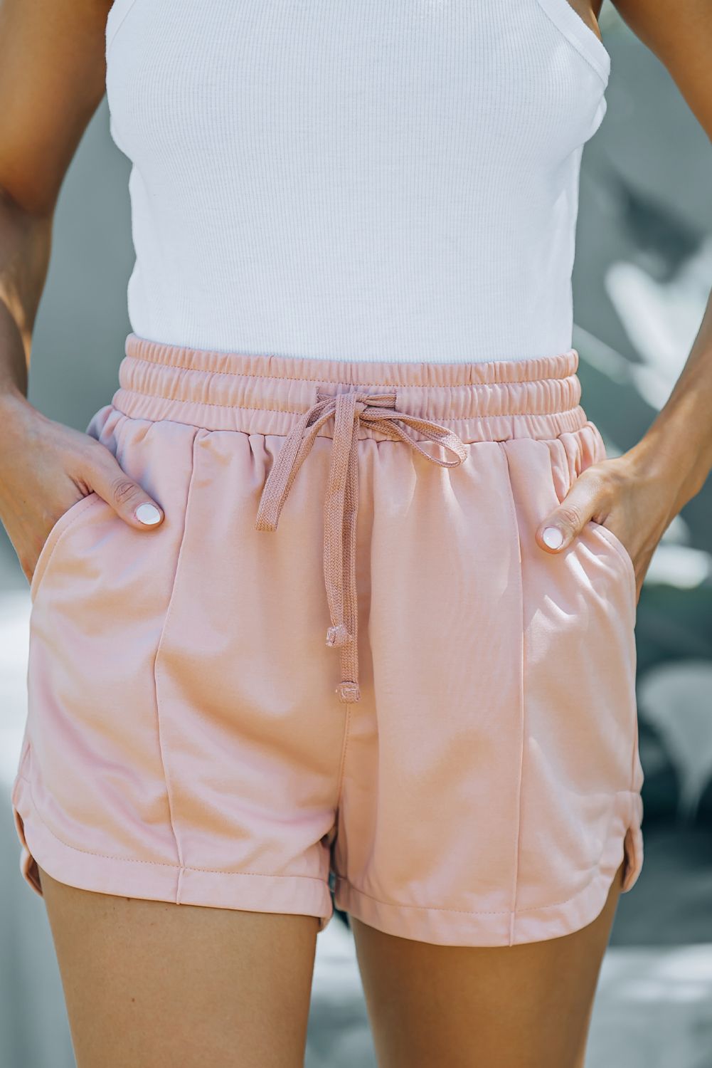 Dusty Pink Drawstring Elastic Waist Casual Shorts with Pockets