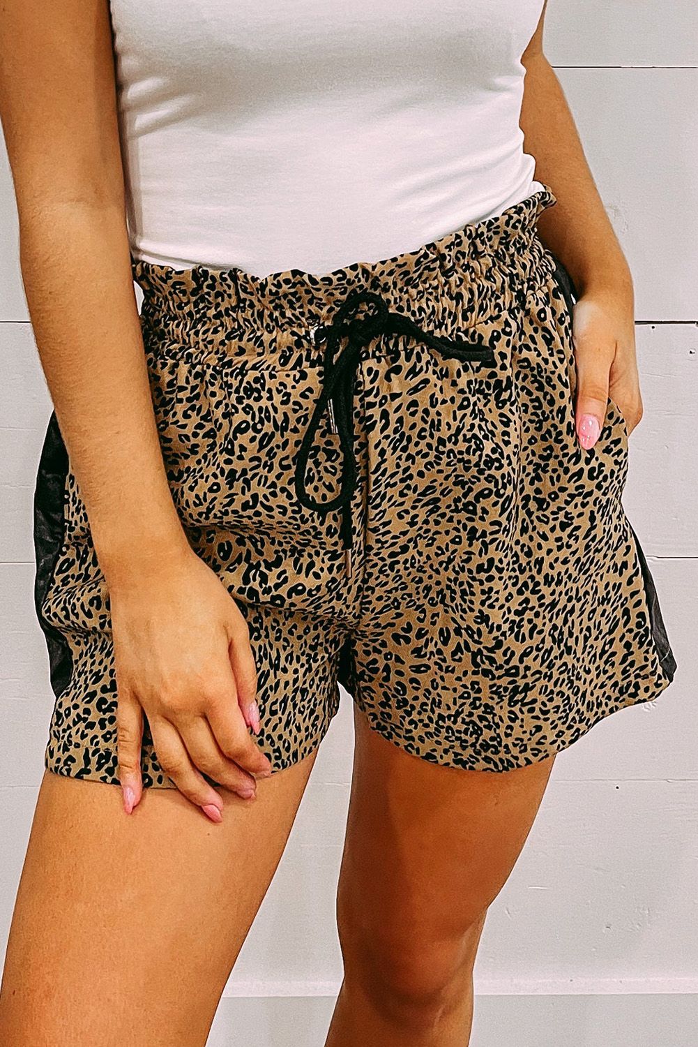 Leopard Print Ruffled Drawstring High Waist Shorts