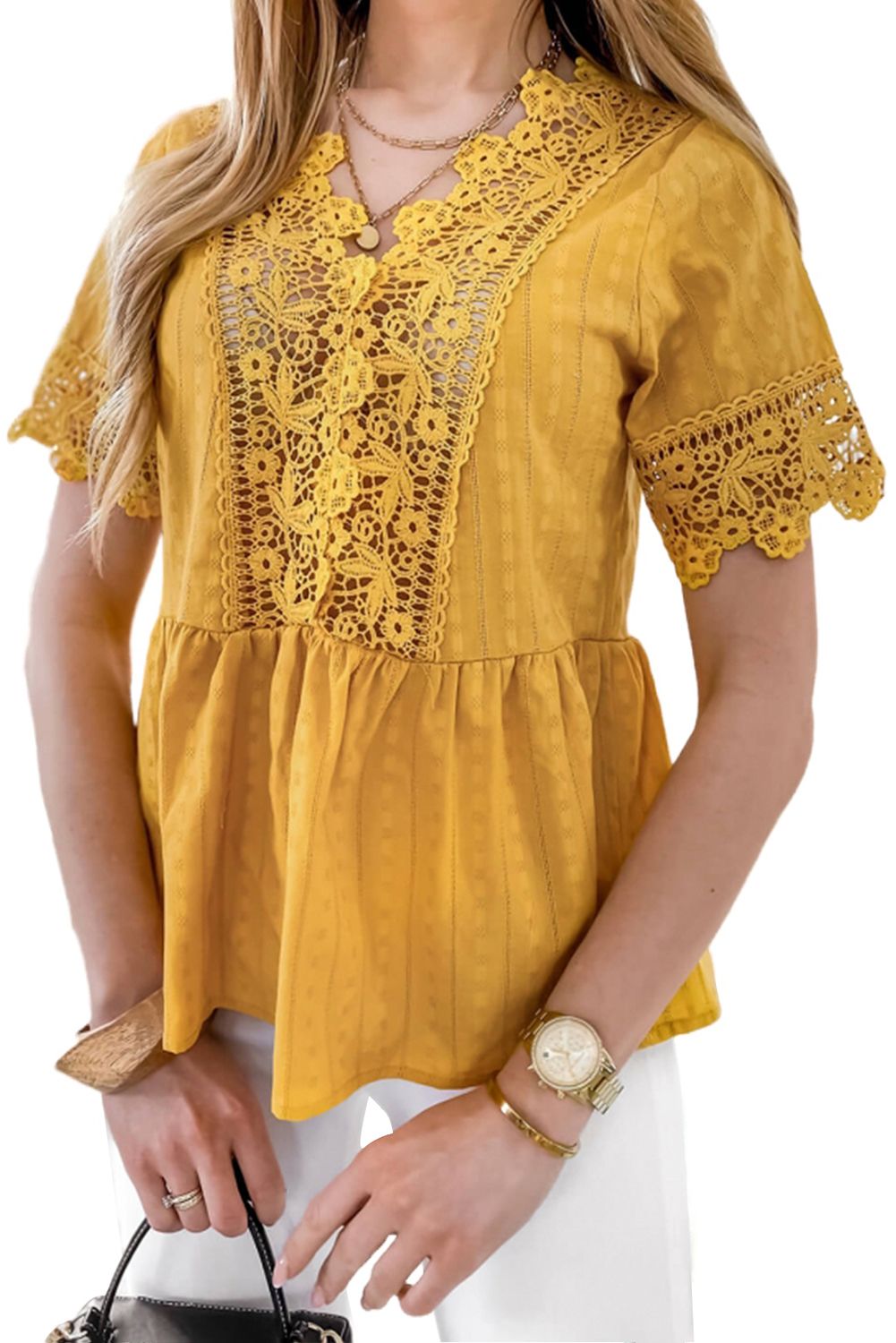 The shirt with the lace splicing is perfect to show the women’s elegant style