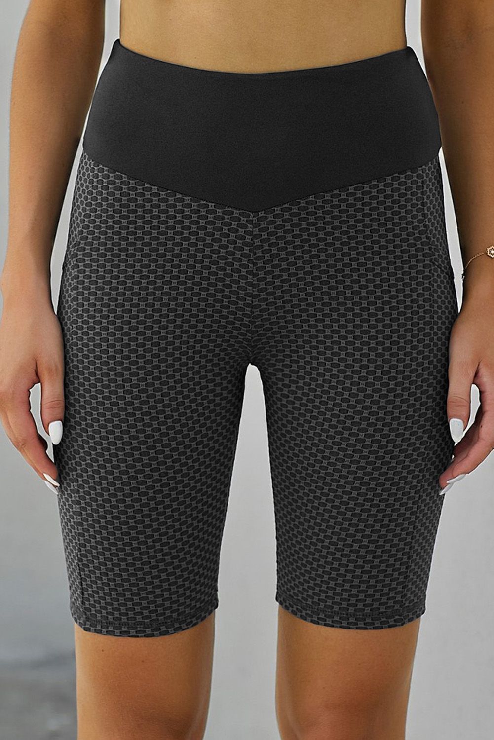 Black Side Pockets Ruched Butt Lifting Yoga Shorts