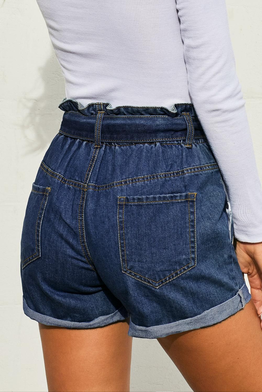 Paper bag waist with detachable sash belt High waist look, relaxed fit, style with pockets Take on mega chic style in these lovely classic denim Made from quality fabric with stretch, comfortable to wear Deliver a high waist cut for the ultimate fashion for women Womens denim shorts are summer essentials for female fashionistas